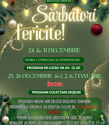 ADI ECOO 2009 SA – Programul de funcționare pentru perioada sărbătorilor