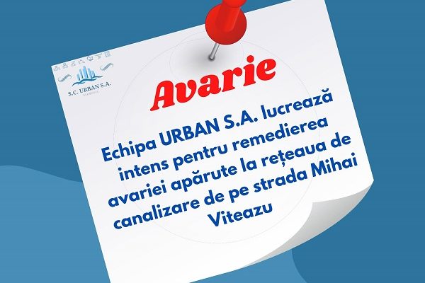 SC URBAN SA Slobozia: Avarie apărută la rețeaua de canalizare de pe strada Mihai Viteazu!