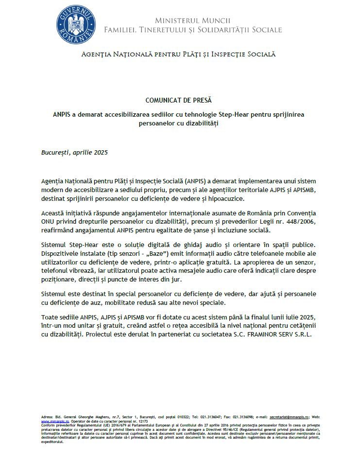 ANPIS a demarat accesibilizarea sediilor cu tehnologie Step-Hear pentru sprijinirea persoanelor cu dizabilități