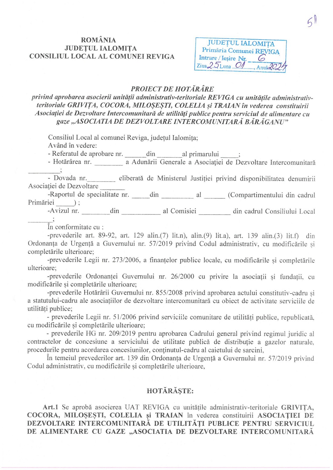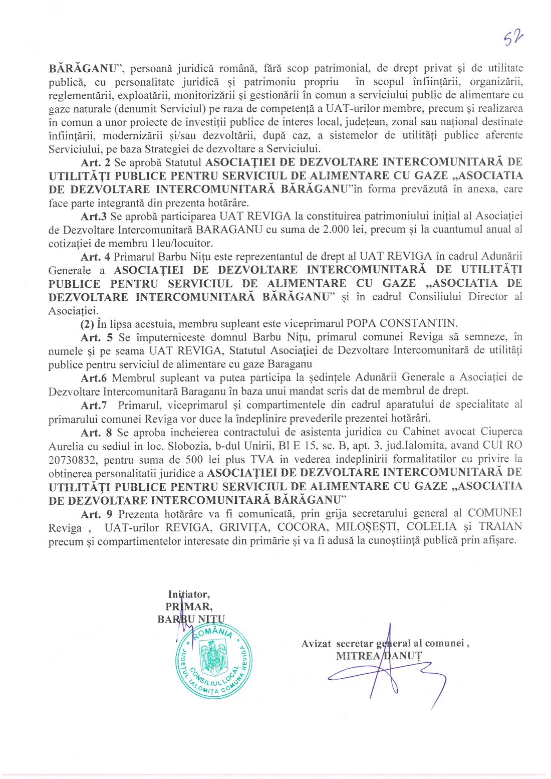 Comuna Reviga și alte 5 localități înființează Asociația de Dezvoltare Intercomunitară Bărăganu pentru realizarea serviciului de alimentare cu gaze