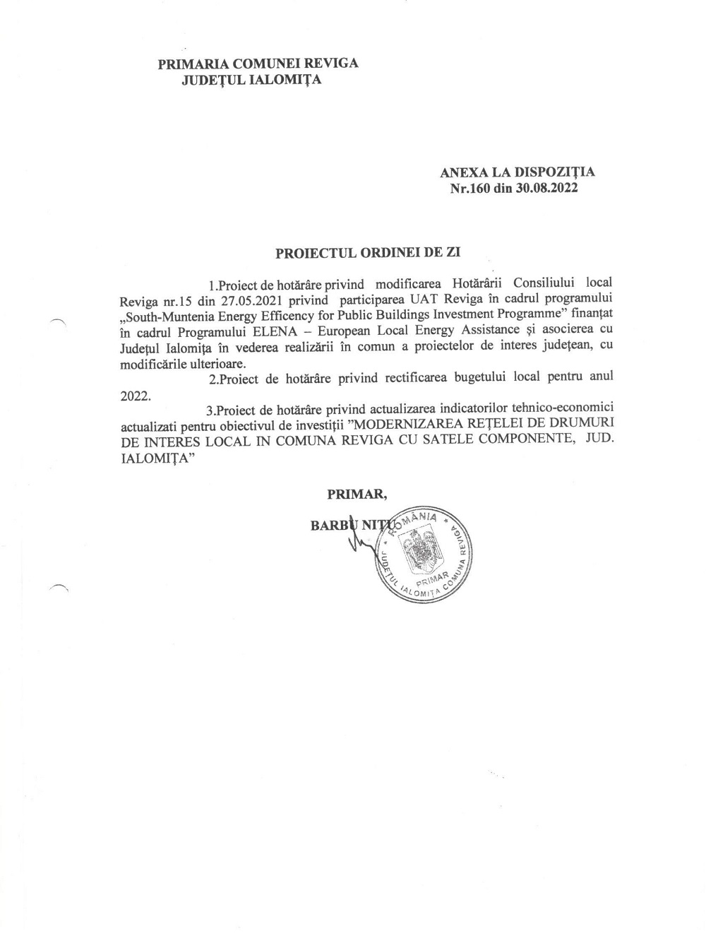 Consiliul Local al comunei Reviga se convoacă în ședință de îndată