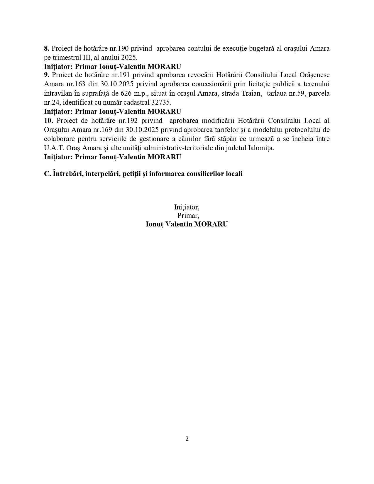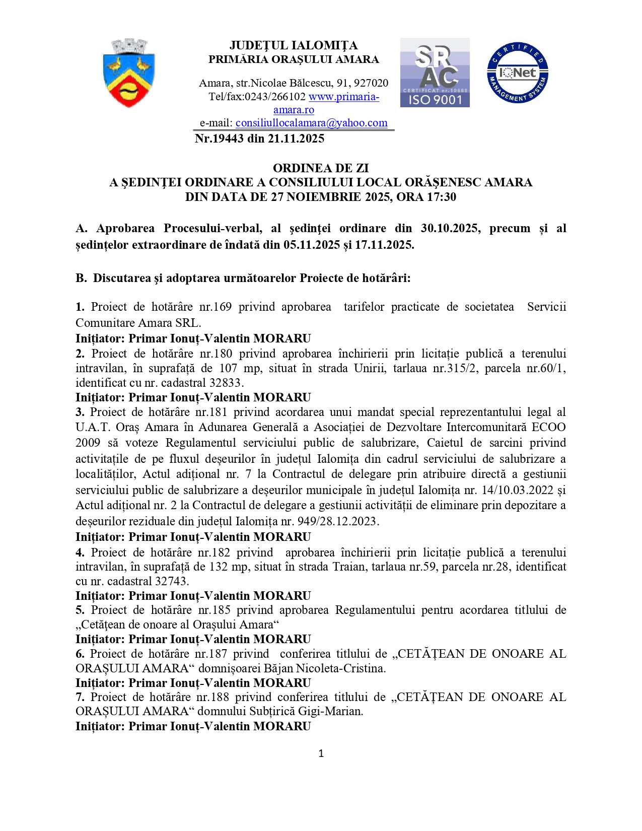 Convocarea ședinței ordinare a Consiliului Local Amara