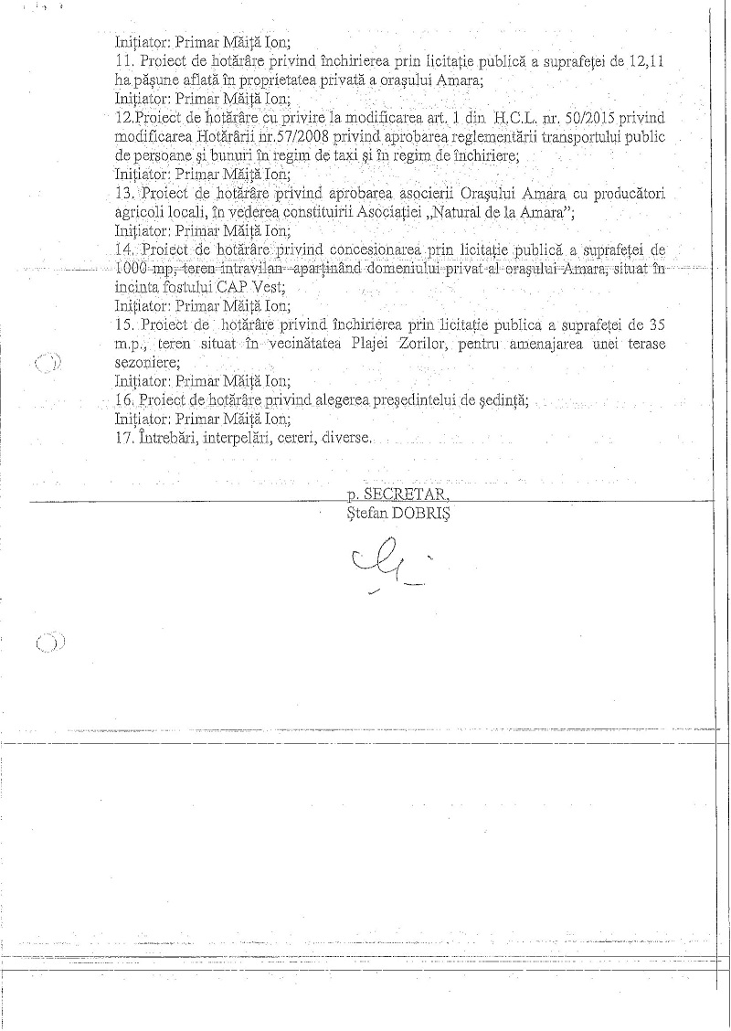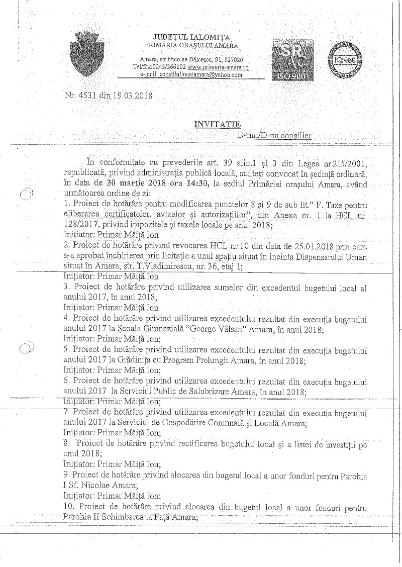 Convocarea ședinței ordinare a Consiliului Local Amara