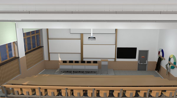 Proiectul de modernizare a amfiteatrului nr. 2104, situat în clădirea Virgil Madgearu a ASE, a constat în restaurarea completă a structurii sălii și în dotarea acesteia cu video proiector, ecran inteligent, sistem inteligent de utilizare a jaluzelelor și a luminilor, sistem de sunet, toate echipamentele fiind coordonate prin tableta încorporată în catedră. Proiectul a inclus și renovarea peretelui exterior al sălii, care acum a fost transformat într-un spațiu de lucru și recreativ pentru studenți în timpul pauzelor.