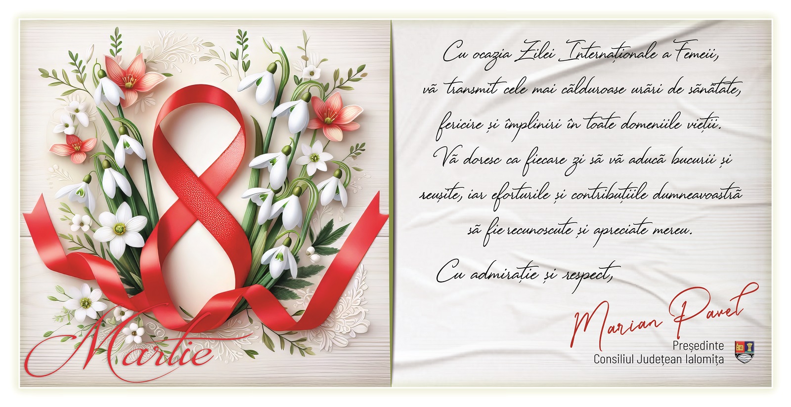 Felicitarea Consiliului Județean Ialomița cu prilejul Zilei de 8 Martie