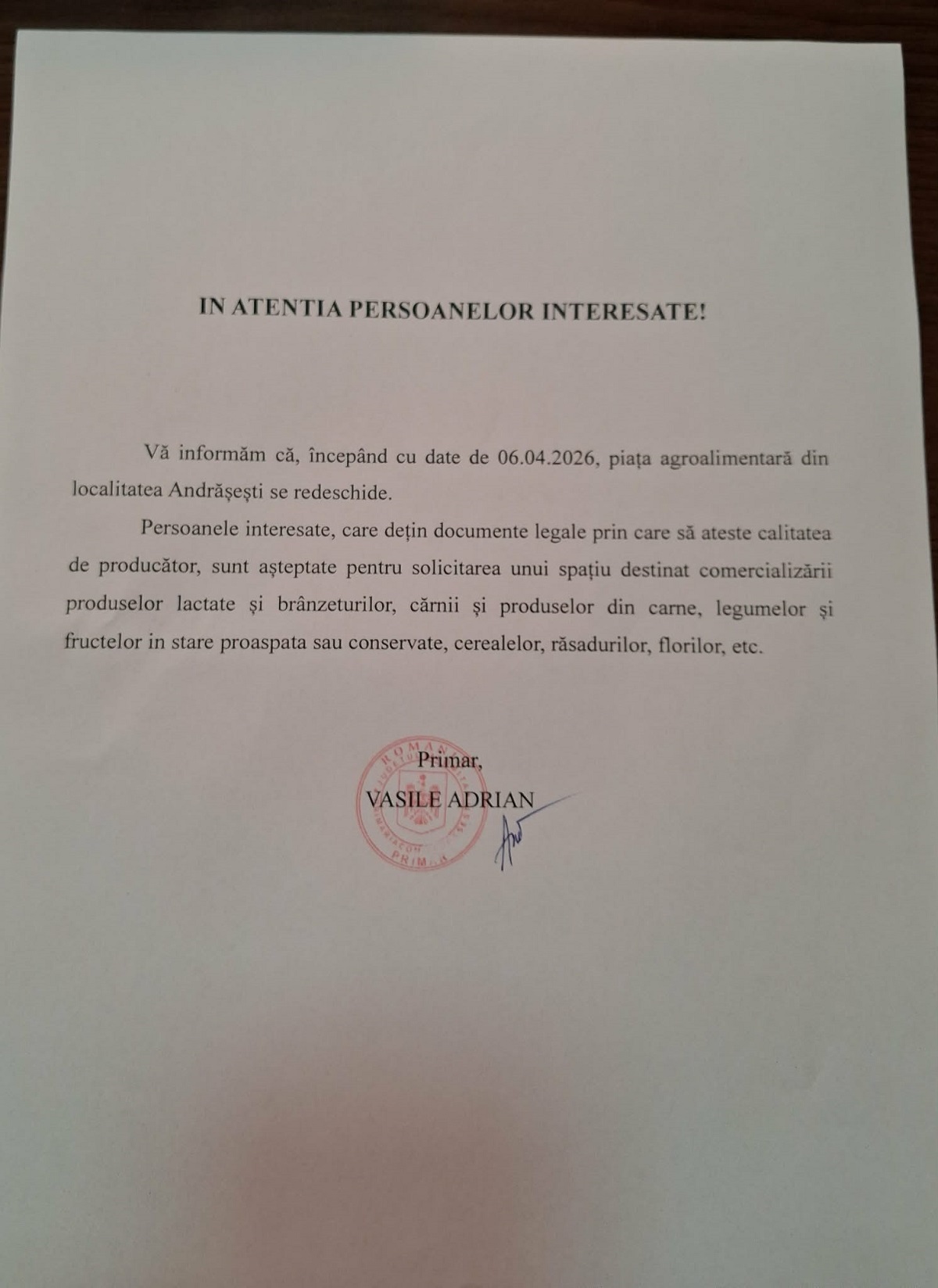 Piața agroalimentară din comuna Andrășești se redeschide!