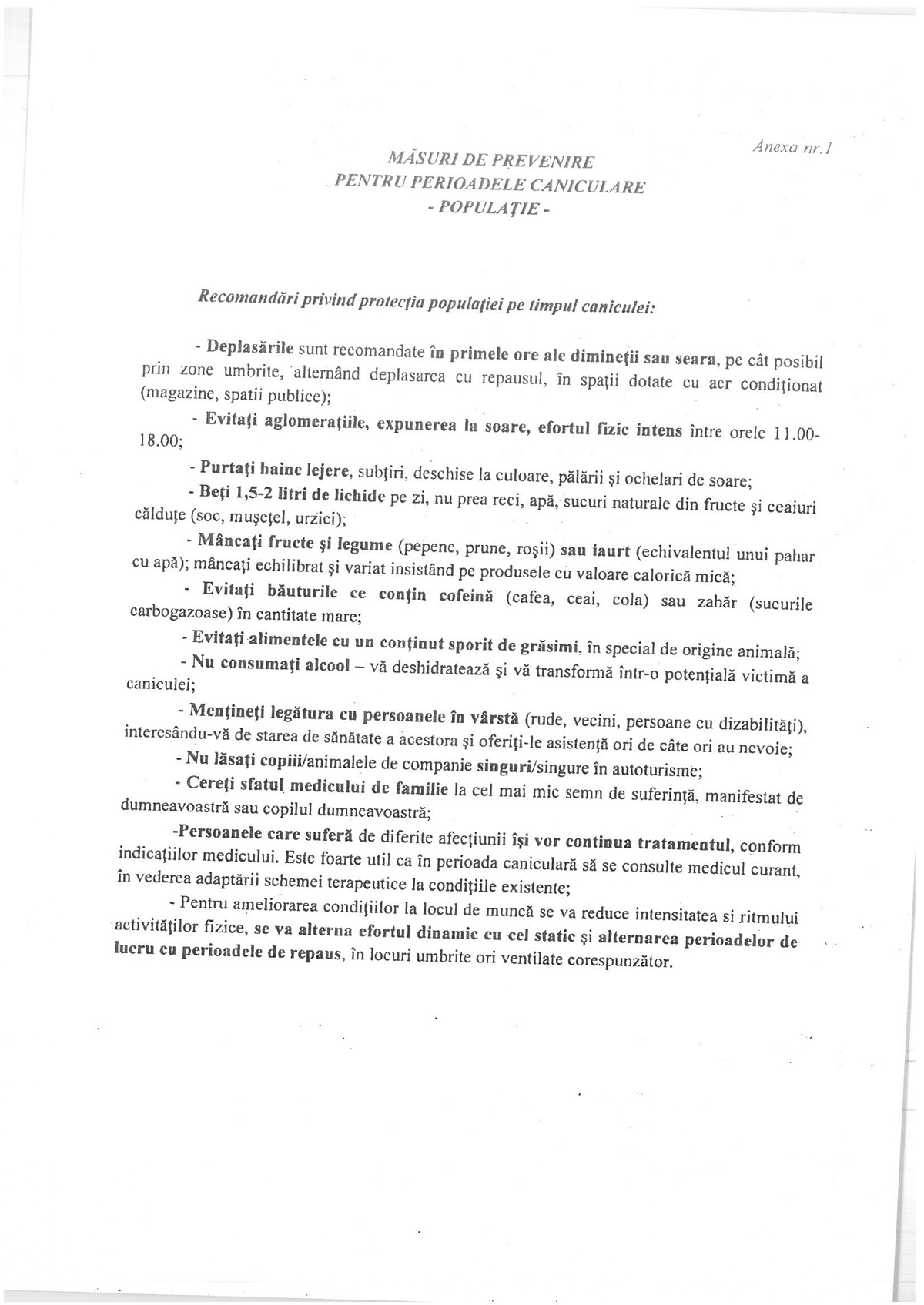 Primăria Orașului Țăndărei: Recomandări măsuri de protecție pentru perioadele caniculare