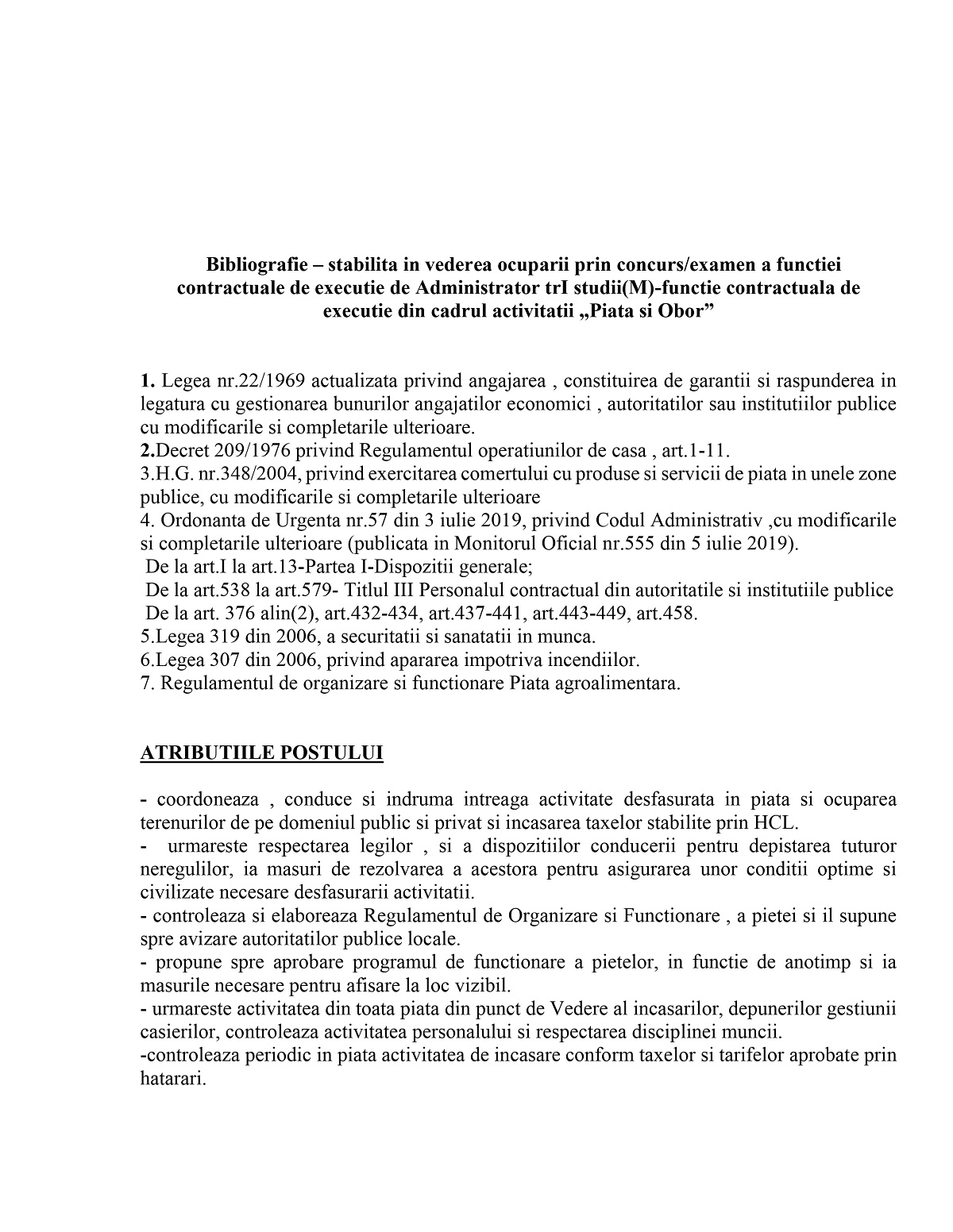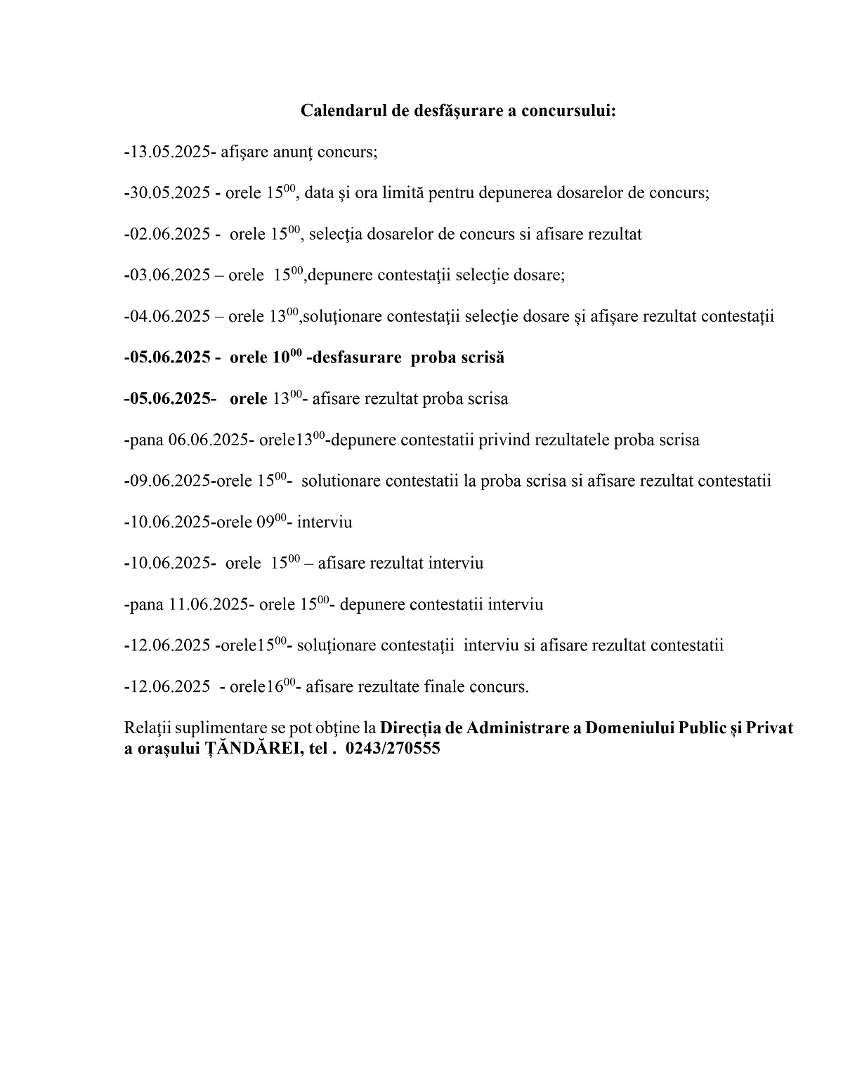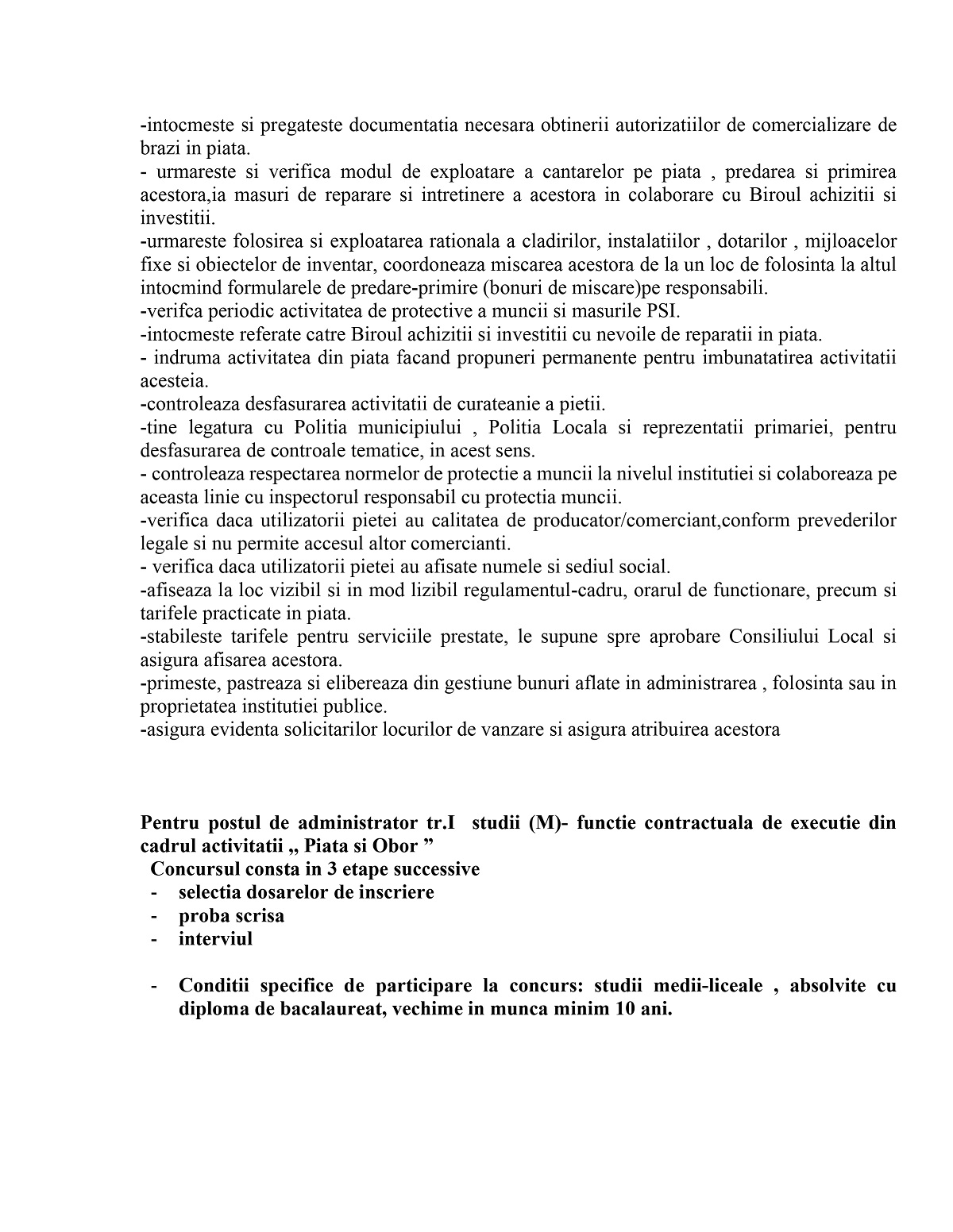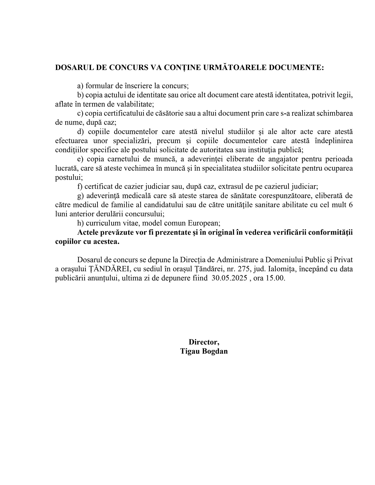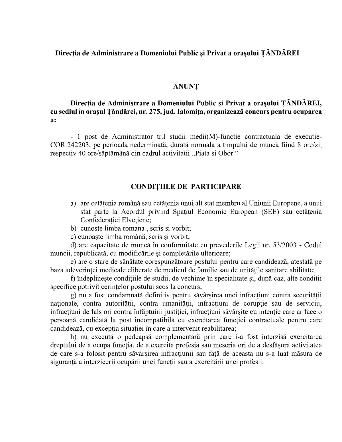 Primăria Țăndărei: Anunț organizare concurs pentru postul de administrator piață din cadrul DADPP Țăndărei
