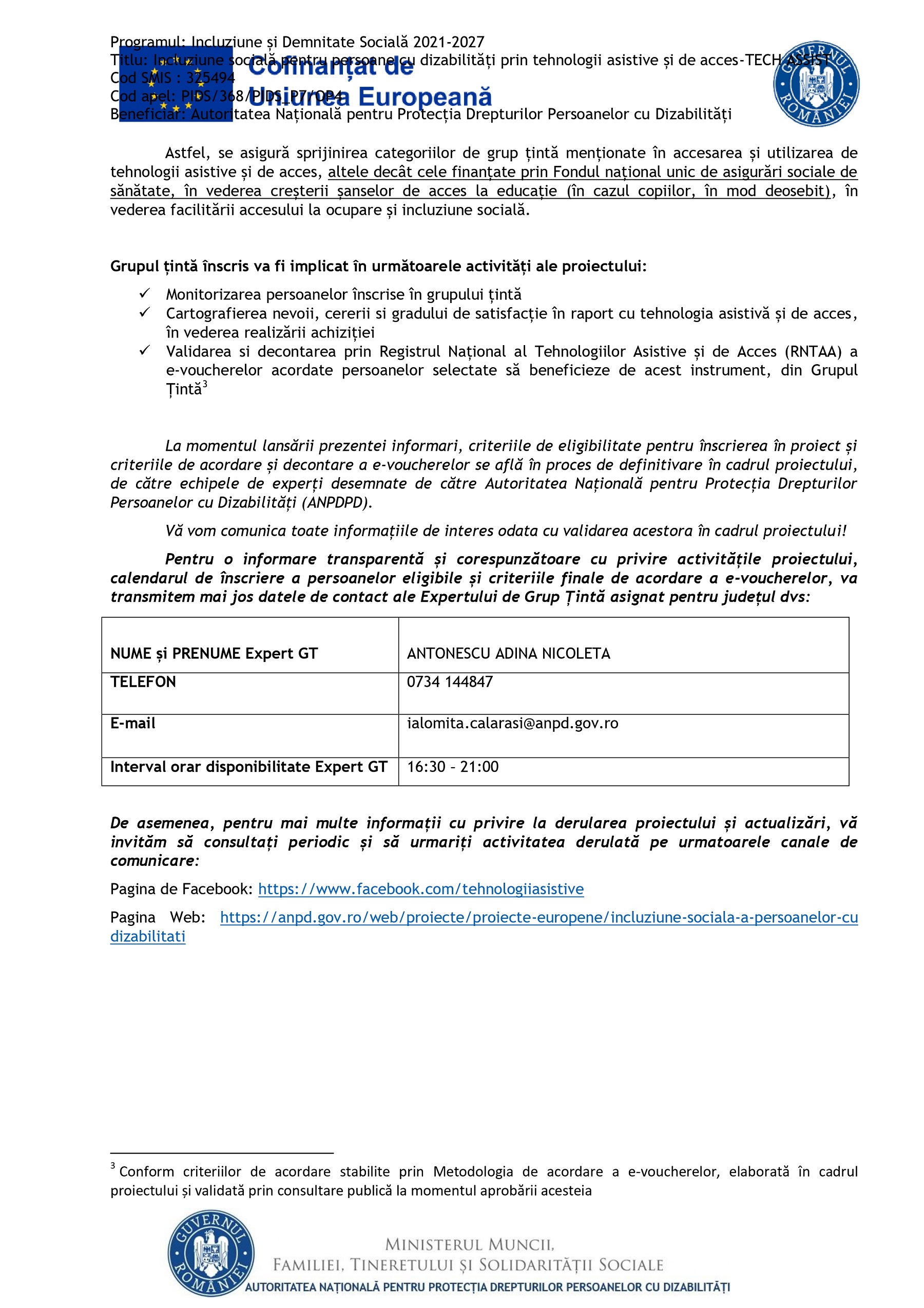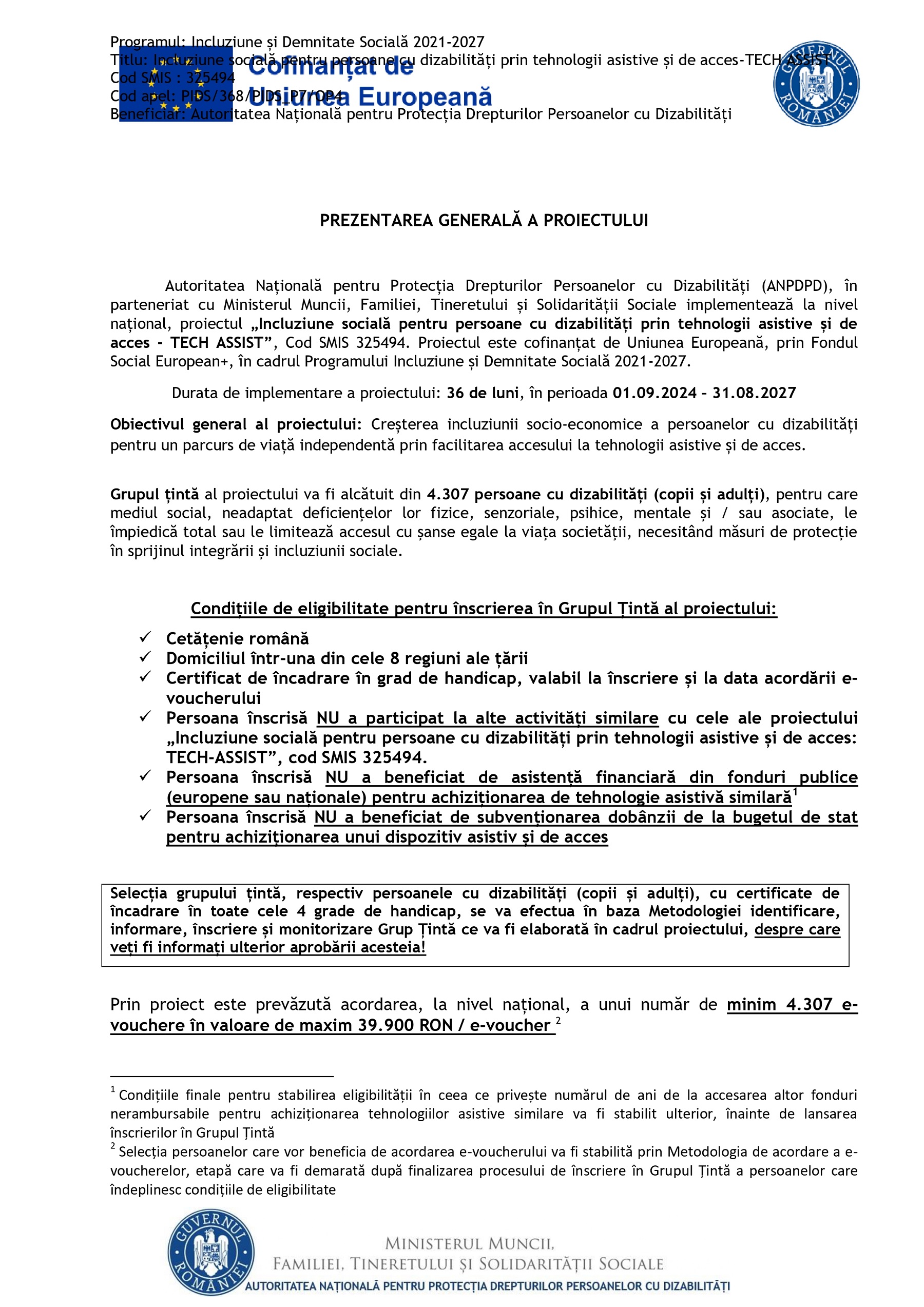 Primăria Țăndărei: Informații generale proiect „Incluziune socială pentru persoane cu dizabilitați prin tehnologii asistive și de acces – TECH ASSIST ”