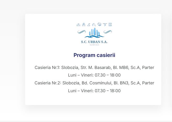 Programul casieriilor SC URBAN SA Slobozia