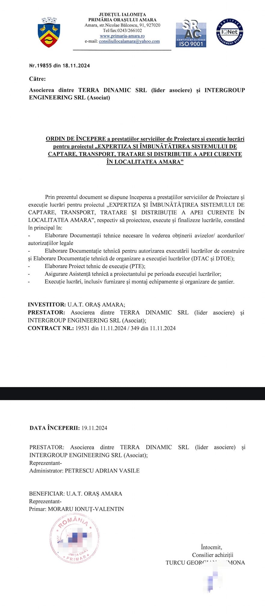 Vești bune pentru locuitorii orașului Amara! Încep lucrările la proiectul privind îmbunătățirea sistemului de captare, tratare și distribuție a apei