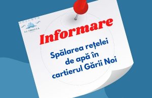 Vă informăm că în intervalul 08:00 – 16:00 vor fi efectuate lucrări de spălare a rețelei de apă din cartierul Gării Noi, prin hidranții existenți...